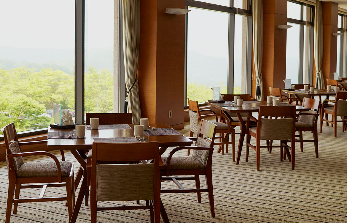 그린을 바라보며 즐길 수 있는 여유롭고 편안한 식사 공간